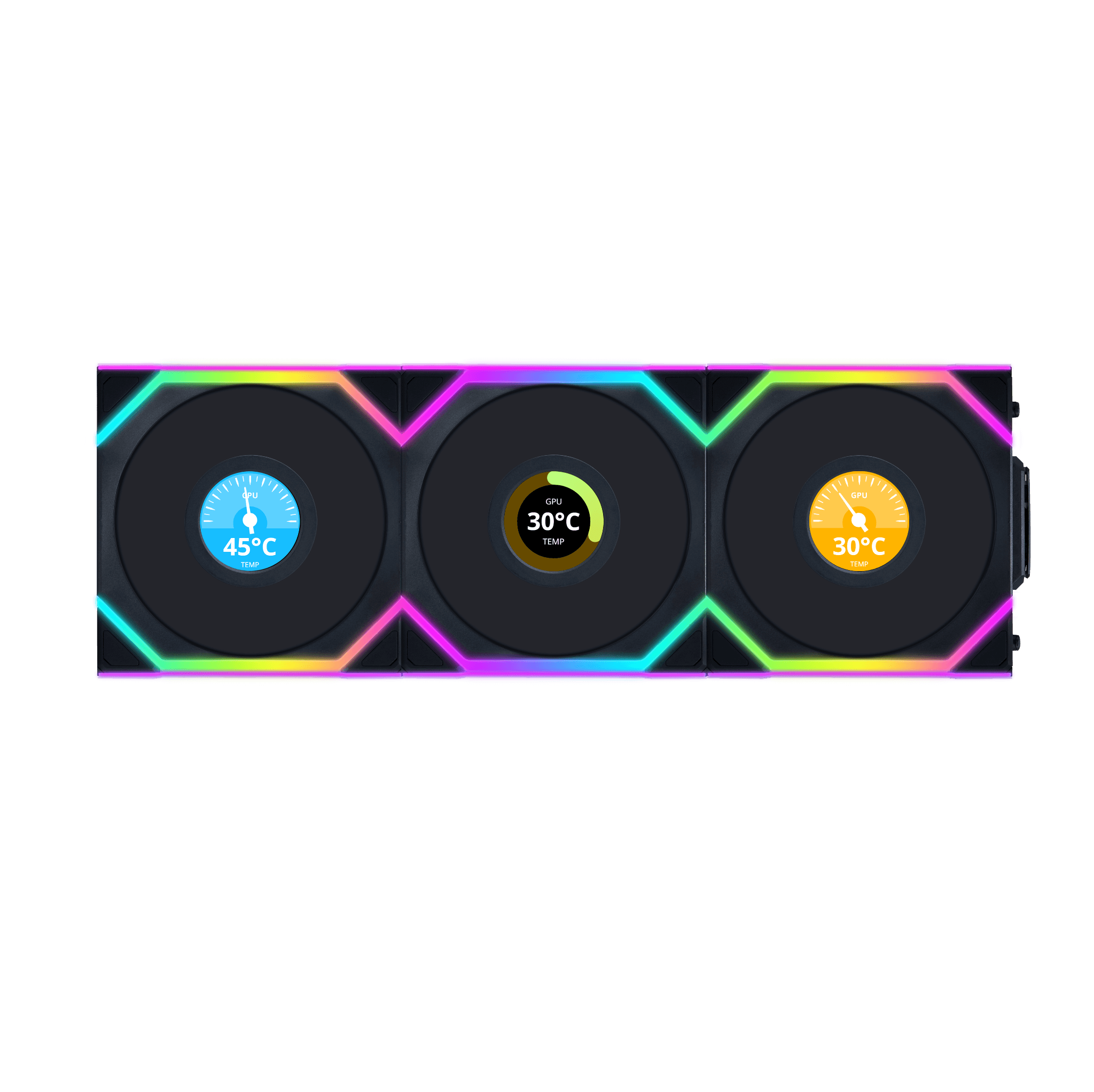 Quạt Máy Tính Lian Li SL120 LCD Triple pack Black - 12SLLCD1W3B (Màn hình LCD/Led vô cực)