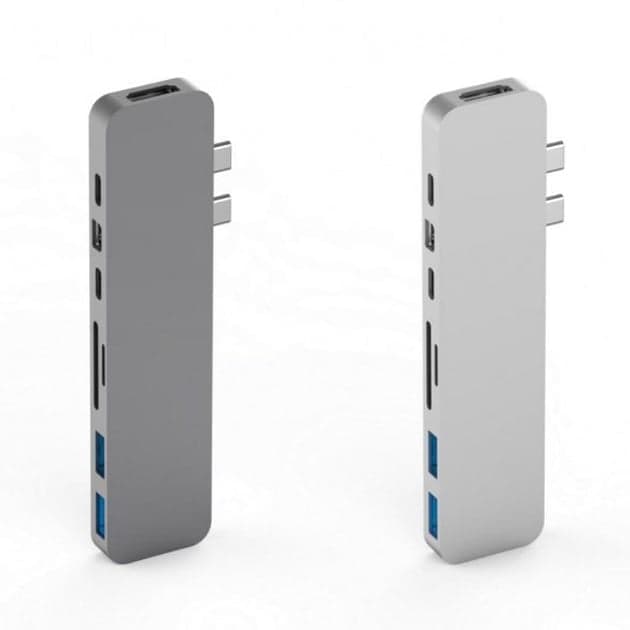 Cổng/cáp chuyển đổi (hub) giúp mở rộng khả năng kết nối cho các laptop hiện đại. Hub có thể chuyển từ một cổng USB-C ra nhiều cổng khác như HDMI, USB-A, khe đọc thẻ nhớ, đáp ứng nhu cầu kết nối đa dạng.