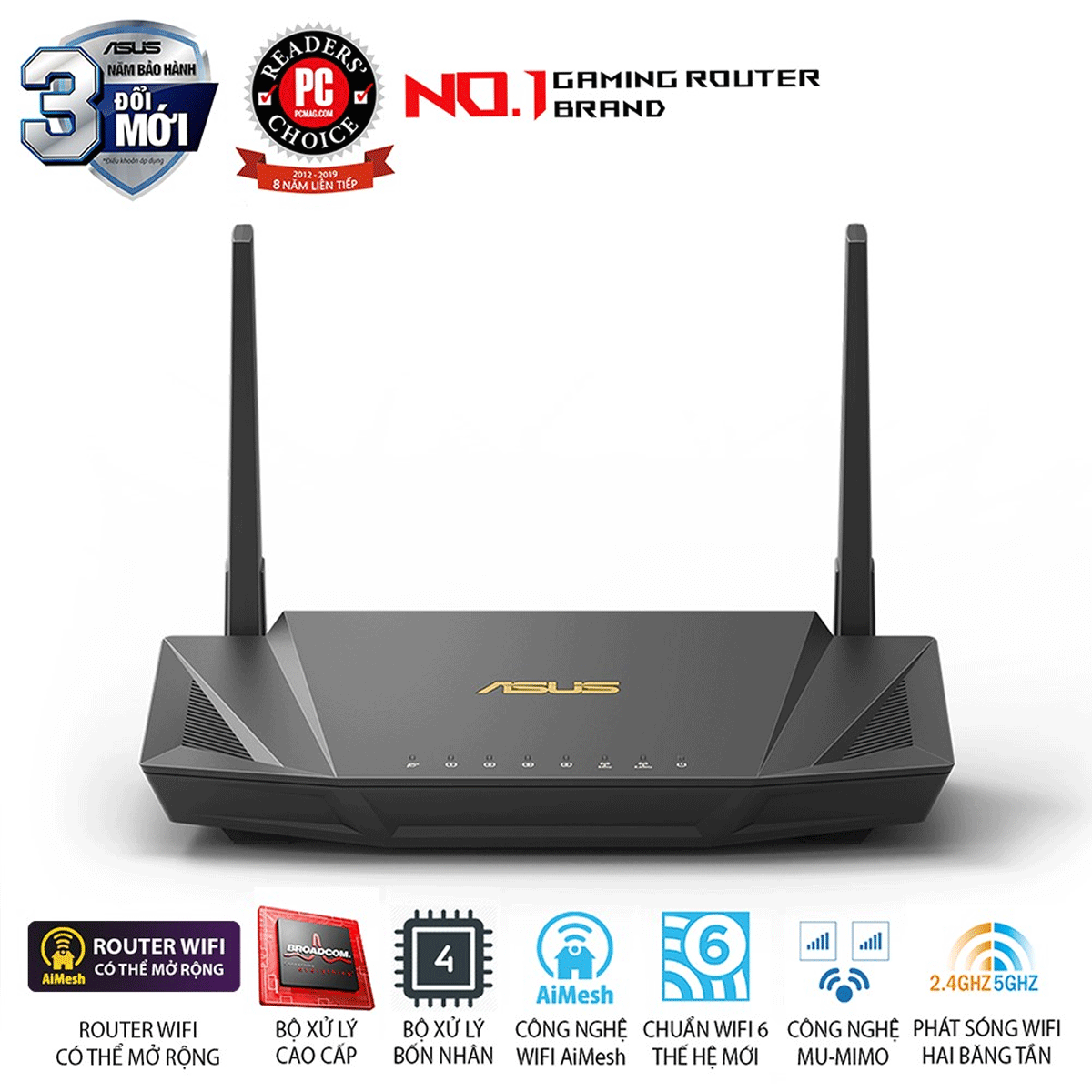 - Bộ định tuyến mở rộng ASUS RT-AX52 (AX1800) Dual Band WIFI 6: Hỗ trợ WiFi 6 tốc độ tối đa 2402 Mbps (5GHz) + 574 Mbps (2.4GHz), trang bị CPU 1.7GHz quad-core, RAM 256MB. Có 4 ăng-ten ngoài, công nghệ OFDMA, Beamforming, hỗ trợ AiMesh và quản lý qua ASUS Router App.