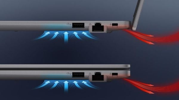 Viên pin 50Wh cho thời gian sử dụng đủ cho một ngày làm việc văn phòng cơ bản, hạn chế việc phải sạc nhiều lần. Bộ sạc USB-C 65W nhỏ gọn giúp bạn dễ dàng mang theo, thuận tiện khi đi công tác hoặc di chuyển giữa các địa điểm làm việc. Hệ thống tản nhiệt được tối ưu giúp máy vận hành mát mẻ hơn khi chạy nhiều tác vụ, trong khi loa tích hợp hỗ trợ tốt cho việc họp, trình chiếu và giải trí nhẹ.