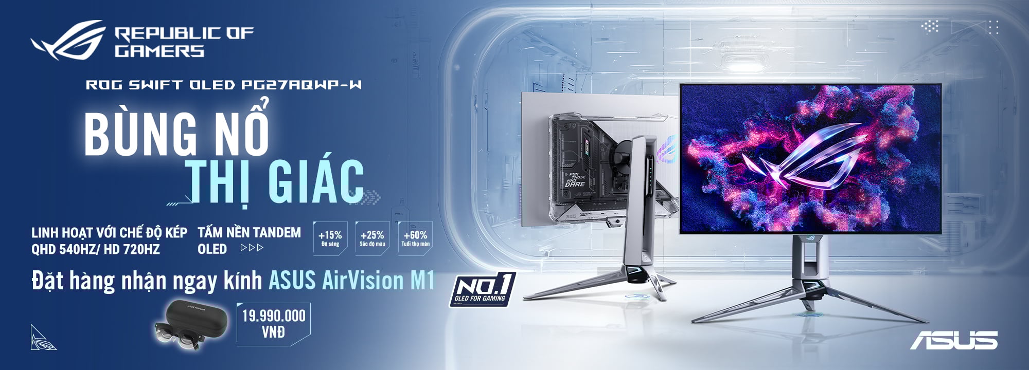 Màn hình Asus ROG Swift PG27AQWP-W mang đến chất lượng hình ảnh OLED vượt trội với độ sáng cao và khả năng chống chói hiệu quả, giải quyết những lo ngại thường gặp ở các tấm nền truyền thống. Bên cạnh đó, sản phẩm còn cung cấp sự linh hoạt giữa độ phân giải 2K sắc nét và tần số quét lên đến 720Hz siêu mượt. Đây là lựa chọn được thiết kế dành cho các game thủ chuyên nghiệp và những người dùng đam mê công nghệ yêu cầu hiệu suất hiển thị đỉnh cao.