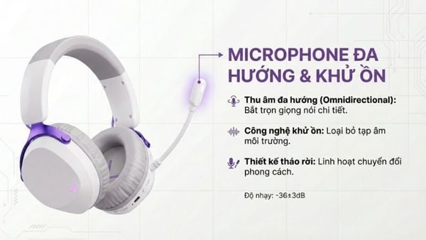 Akko GH300 White được trang bị micro đa hướng (omnidirectional) có khả năng khử tiếng ồn để giọng nói rõ ràng hơn trong quá trình đàm thoại, call Discord hay họp online. Micro có thiết kế dạng tháo rời cho phép người dùng linh hoạt sử dụng. Điều này giúp tai nghe phù hợp với nhiều bối cảnh sử dụng khác nhau từ chơi game tới di chuyển, giải trí.